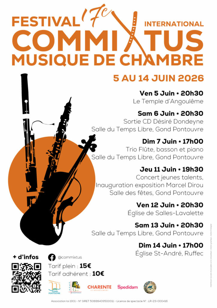 Dans le cadre de la 17e édition du festival international de musique de chambre Commixtus, 7 concerts professionnels sont programmés du 5 au 14 juin dans des communes de Charente.